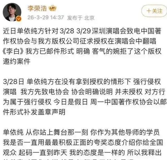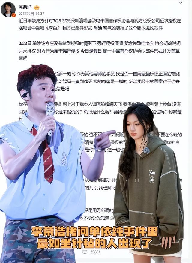 单依纯演唱会刚唱完《李白》,就被李荣浩公开点名侵权。