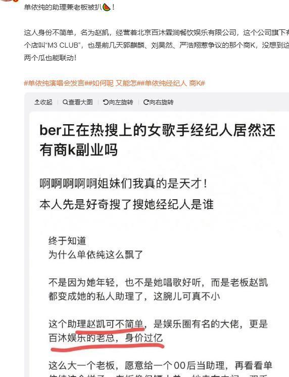更有知情人爆料,单依纯和赵凯的关系远超助理和艺人。